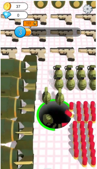 2、瞅子弹环绕界面,等黄色倒计时00:11结束,或点画面中可能存在的升级选项,让黑色圆洞周围+1标识增加子弹。