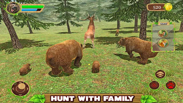 1、提供真实的野外生存体验系统,让玩家完全代入凶猛棕熊的角色,在危机四伏的丛林中艰难求生。